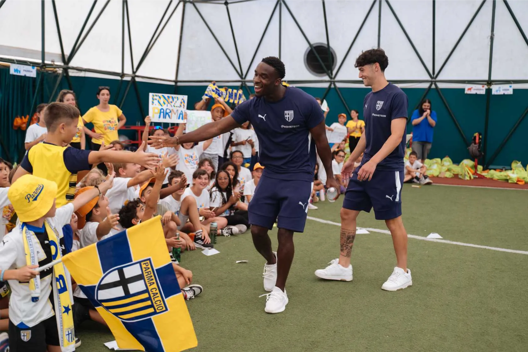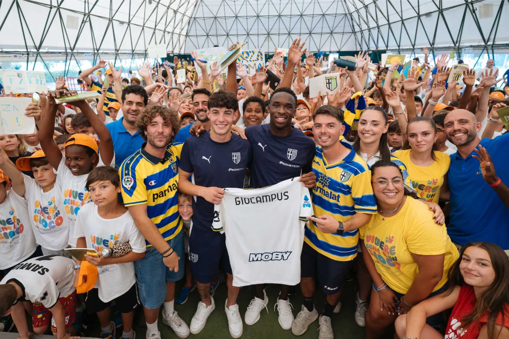 Parma, 18 luglio 2025 – Grande entusiasmo e partecipazione con richieste di foto, selfie e autografi per il tradizionale appuntamento estivo tra Parma Calcio e Giocampus, l’alleanza educativa territoriale di cui il Club è socio e sostenitore. A rappresentare la squadra erano presenti i centrocampisti Mandela Keita ed Elia Plicco, che hanno incontrato più di 500 giovani parmigiani, dai 5 ai 12 anni, presenti al Campus Scienze e Tecnologie dell’Università di Parma, sede di Giocampus.